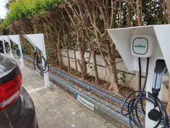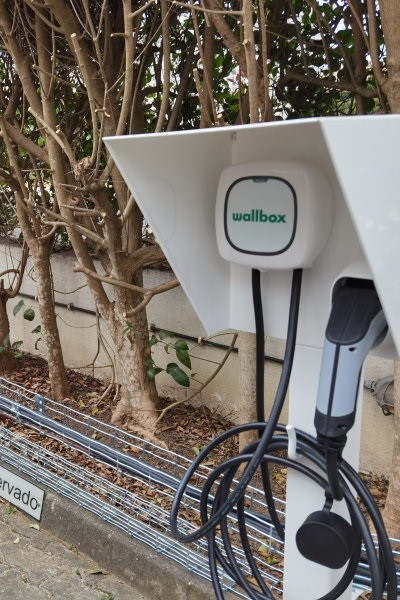 O grau de proteção é IP54 e IK08, o que significa que a estação de carga pode ser instalada ao ar livre.